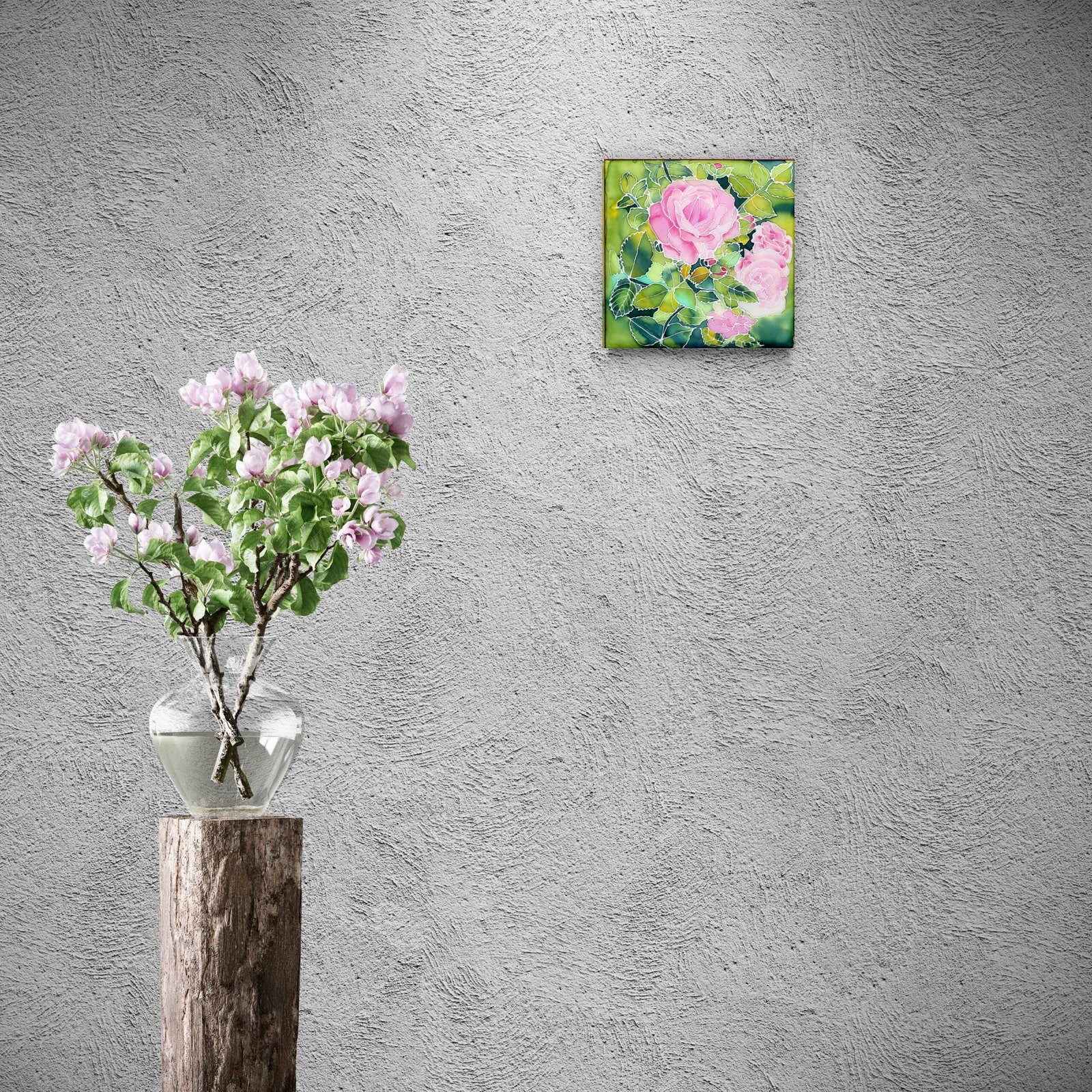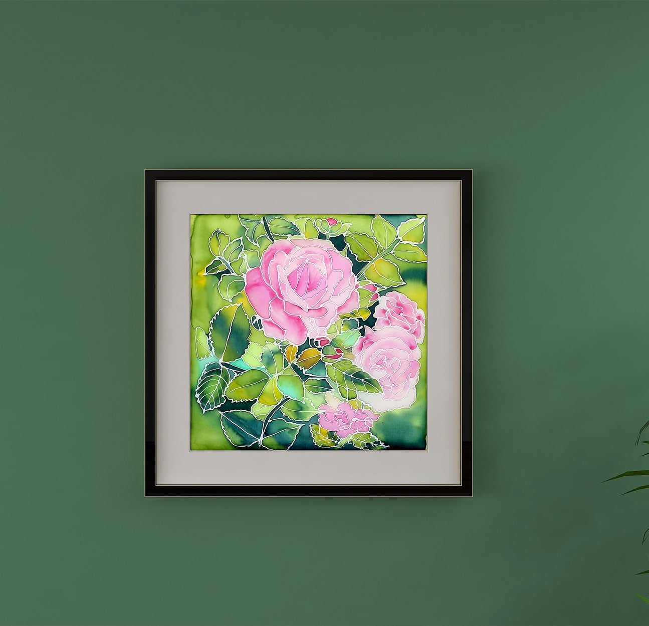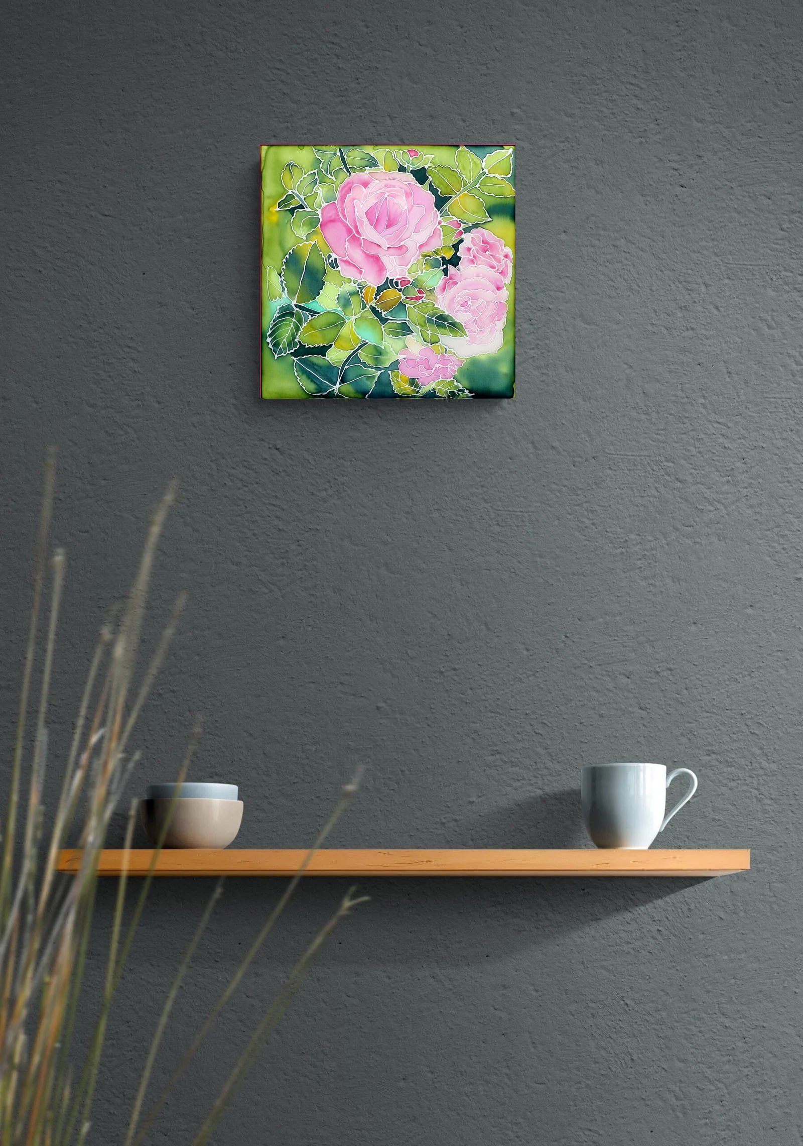 βEnglish Rosesβ is a delicate and vibrant celebration of nature, capturing the timeless beauty of blooming roses in a garden setting. The artwork showcases lush pink roses, their soft petals meticulously outlined and contrasted by the rich green leaves that surround them. The gentle transitions between the shades of pink and green create a sense of harmony, while the luminous quality of the colors gives the roses an almost translucent glow, as if bathed in sunlight. This piece is a beautiful ode to the elegance and grace of English gardens, where natureβs finest blooms are the stars of the scene.